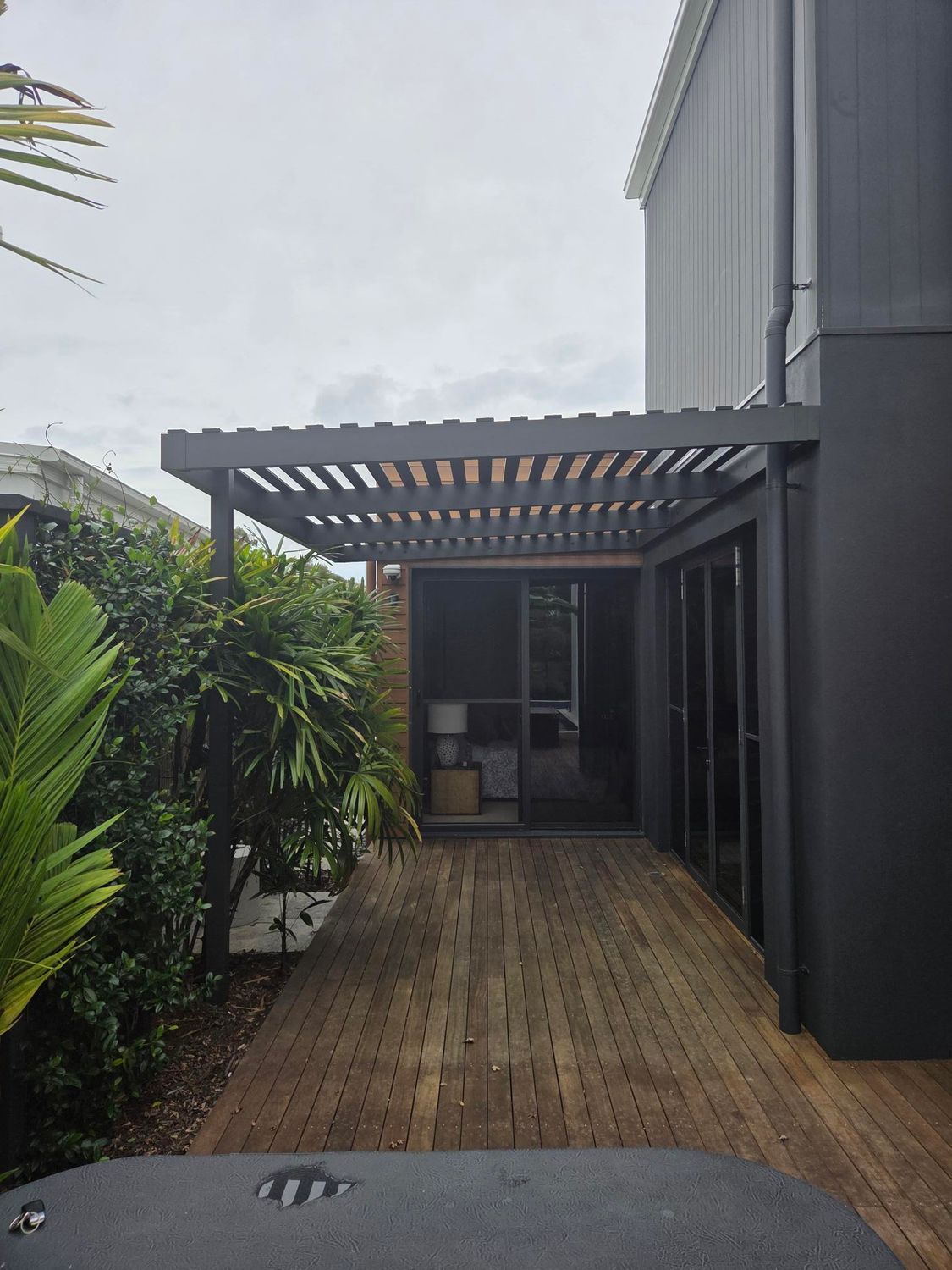 This project showcases our Aluminium Beam system, featuring 150x50mm Beams finished in a sleek Monument Textura Powdercoat. The Custom-designed Arbor was tailored to meet the homeowner's specific needs, combining both form and function to enhance the outdoor living space.